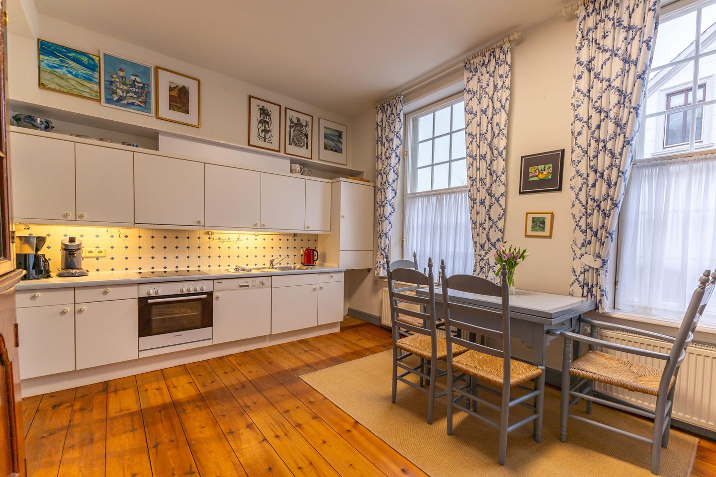 Die Ferienwohnung Cirksena liegt im Erdgeschoss des historischen Harlemschen Hauses und gehört zu den eindrucksvollsten Wohnungen des Hauses. Großzügige Räume, große historische Fenster in nahezu jedem Zimmer und eine besondere Tiefe in der Gestaltung prägen diese Wohnung.