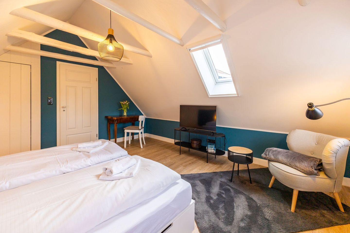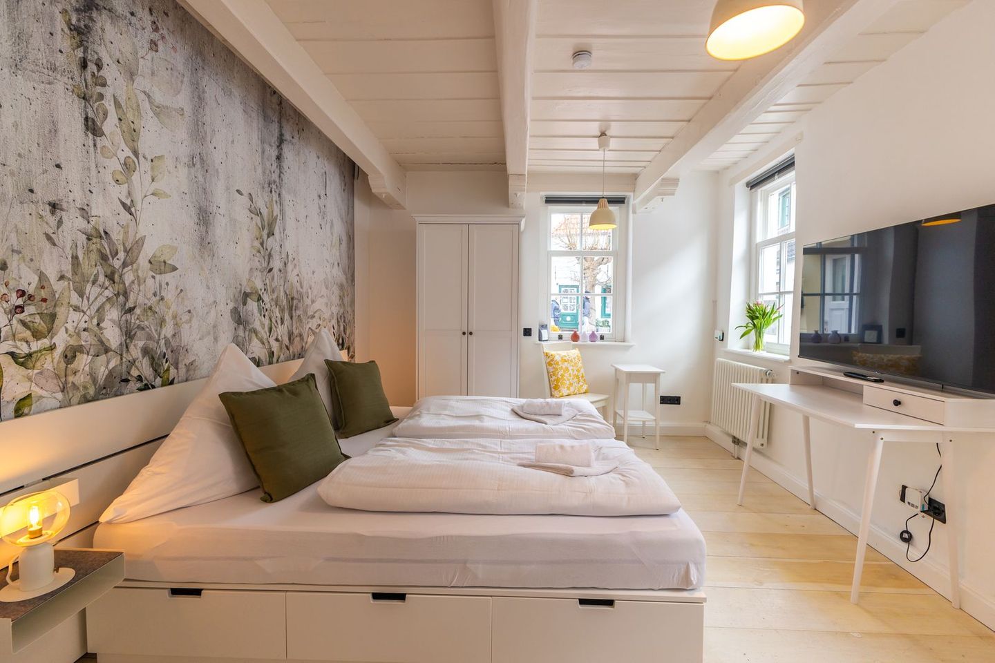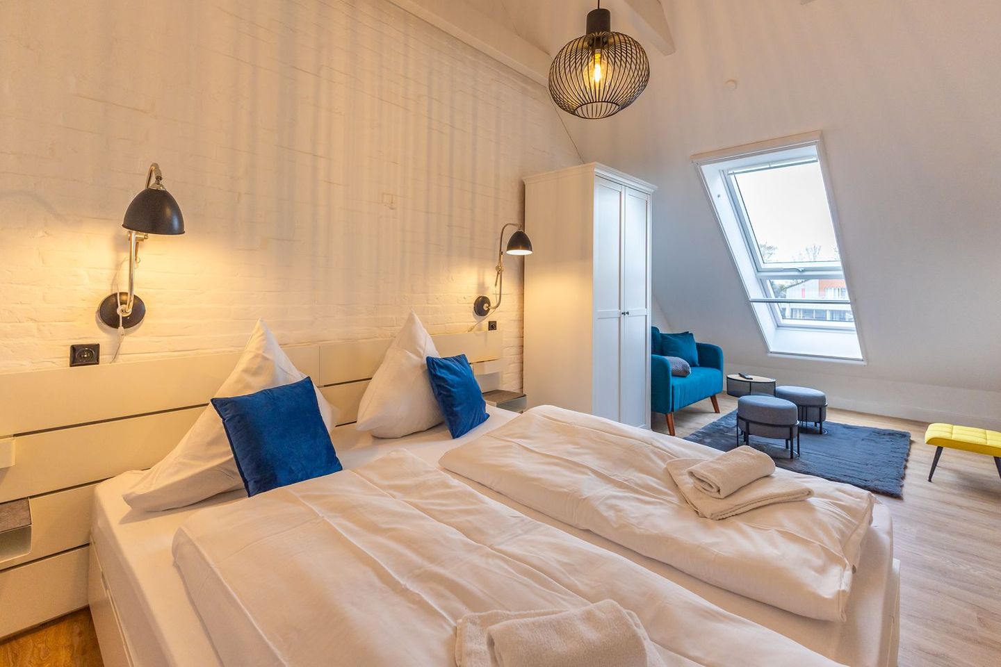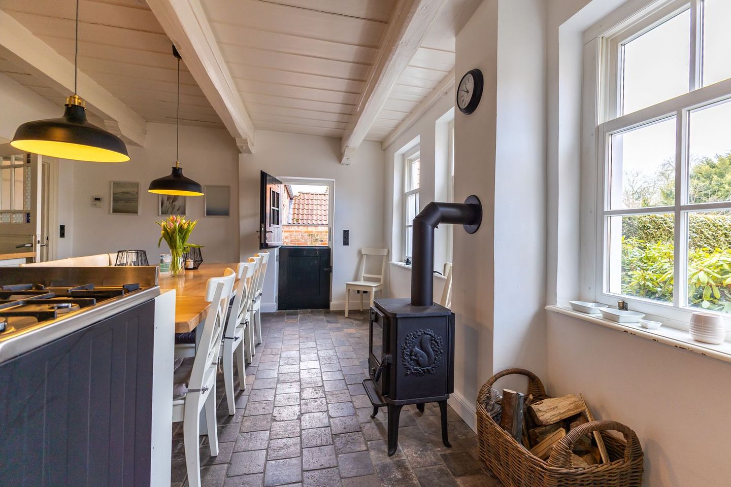 Im Inneren erwartet Sie eine großzügige Wohnküche mit viel Platz zum gemeinsamen Kochen, Essen und Lachen, ein gemütlicher Kamin für die kühleren Tage und der unverwechselbare historische Flair eines echten Fischerhauses.