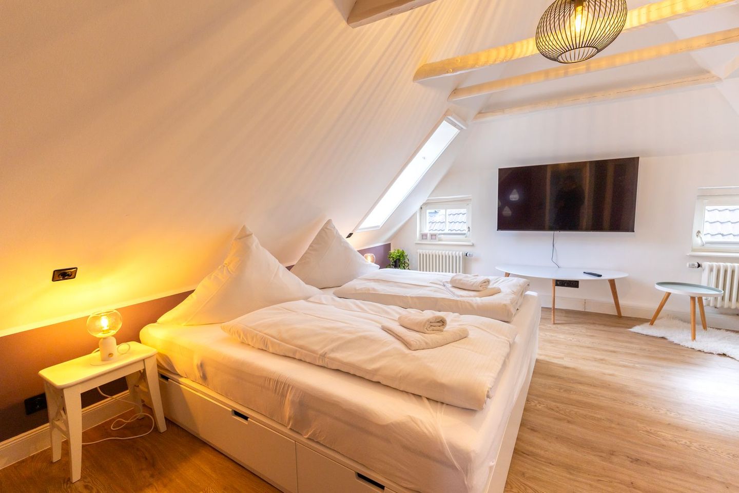 Jedes Schlafzimmer ist mit einem eigenen Fernseher ausgestattet, sodass jeder seinen Rückzugsort genießen kann.